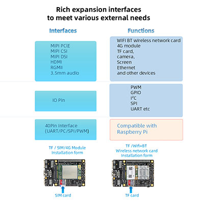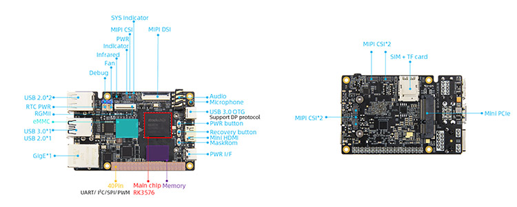 Ενσωματωμένη θύρα Ethernet Gigabit, RGMII, USB3.0/2.0, Mini PCLE, MINI HDMI, MIPI Screen και MIPI κάμερα και άλλες περιφερειακές διεπαφές, οδηγώντας 40pin αχρησιμοποίητες ακίδες, πλούσιες διεπαφές επέκτασης για να καλύψουν περισσότερες αναπτυξιακές ανάγκες!