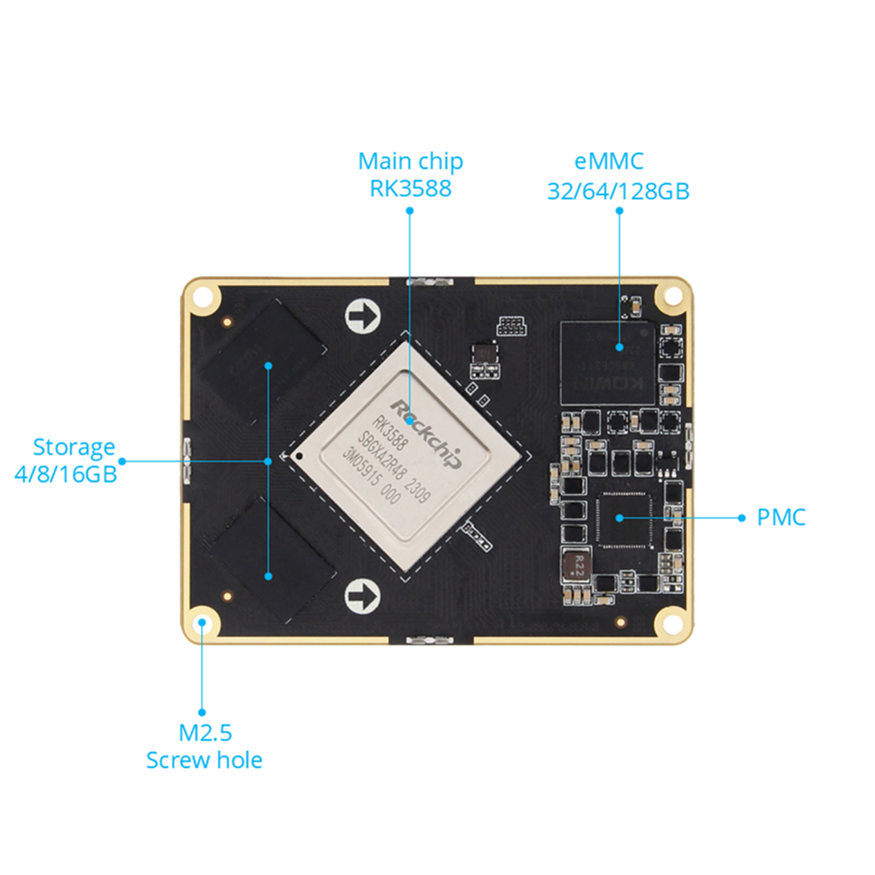 • Διαμόρφωση πυρήνα: 16 GB LPDDR5 RAM + 128 GB eMMC, διπλές θύρες Gigabit Ethernet, δύο θύρες USB 2.0, δύο θύρες USB 2.1, έξι θύρες MIPI CSI, δύο θύρες MIPI DSI, διεπαφή Mini-PCle (υποστηρίζει κάρτες δικτύου Wi-Fi ή άλλες μονάδες διασύνδεσης 4G, μονάδες διασύνδεσης 4G, λειτουργικές μονάδες 4G). Θύρα επέκτασης 40 ακίδων (συμβατή με τη θύρα 40 ακίδων Raspberry Pi, που υποστηρίζει PWM, GPIO, PCI Express, SPI, UART και CAN), M.2 M-KEY συμβατό με M.2 SSD